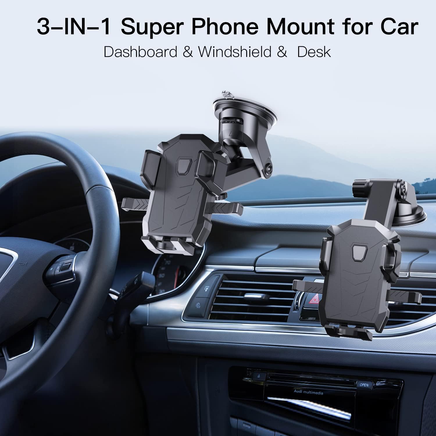 Cell phone car mounts, securely attached to the dashboard, air vent, and...
