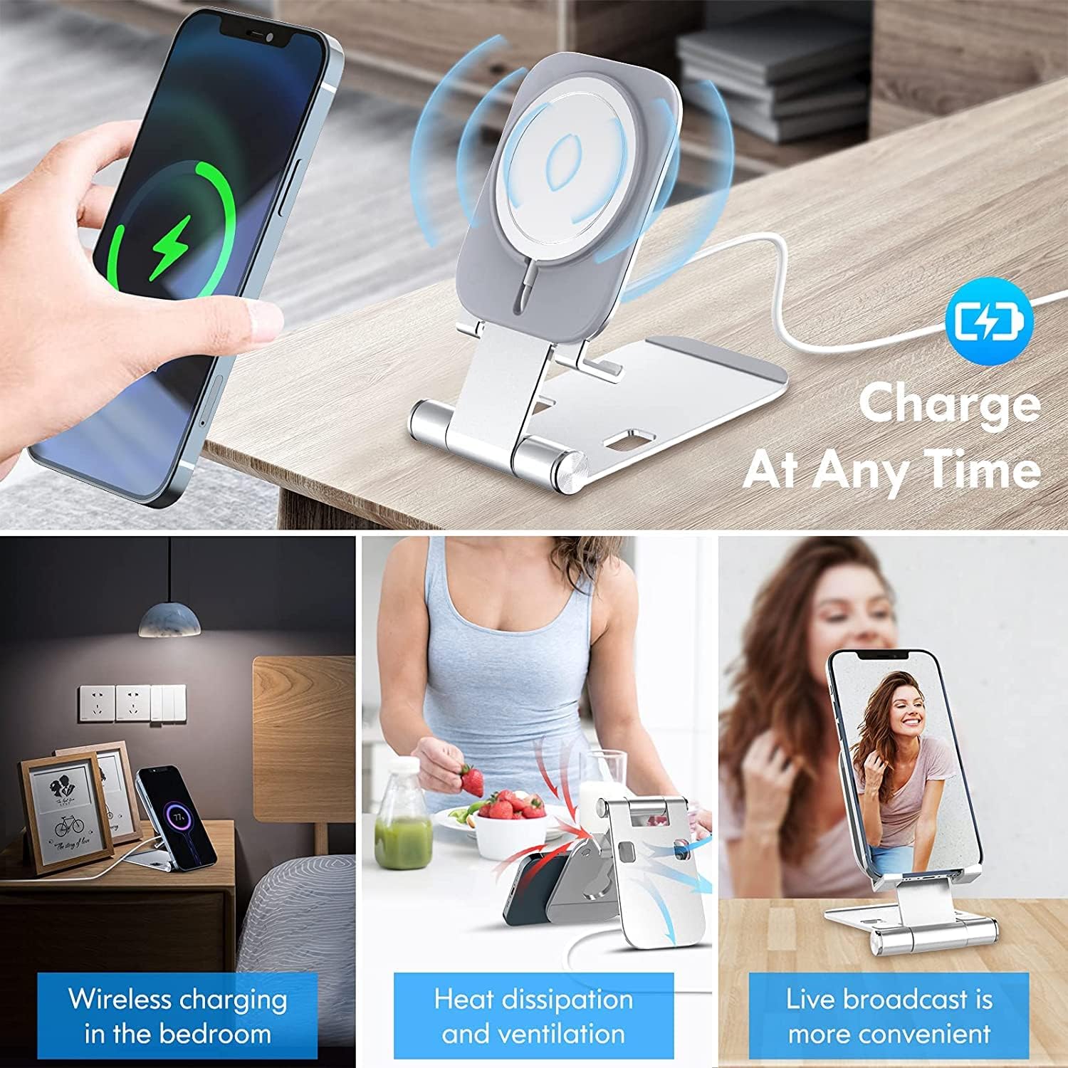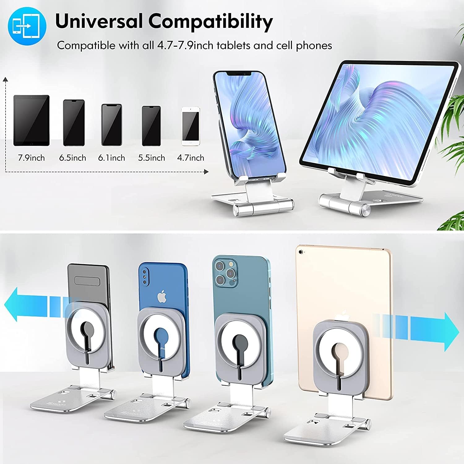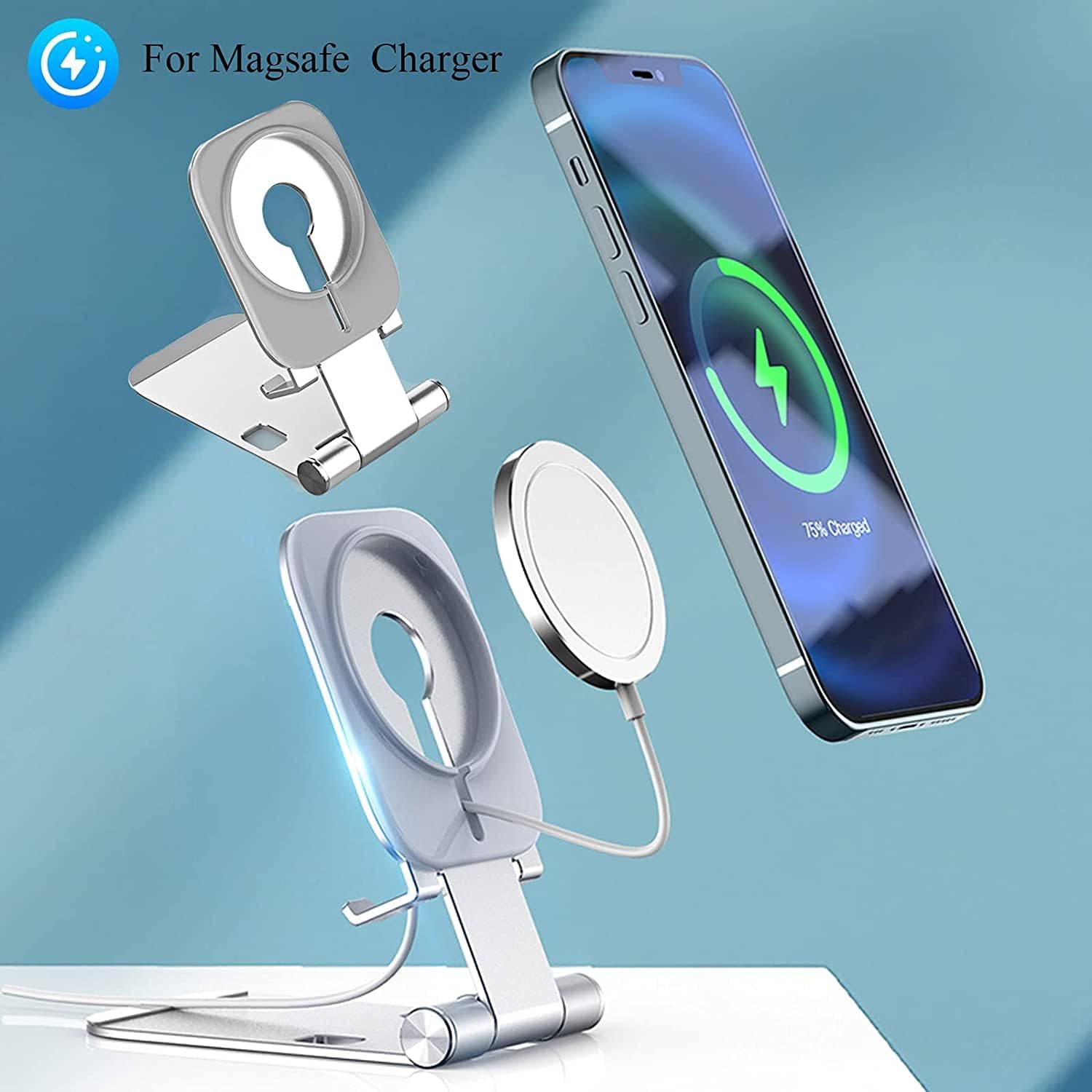 Foldable Stand for Cell Phones and Tablets-Adjustable Desktop Cell Phone Holder Stand Dock Designed and Compatible with iPhone & Magsafe Charger