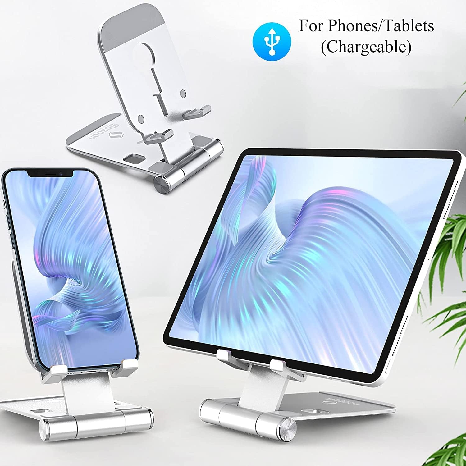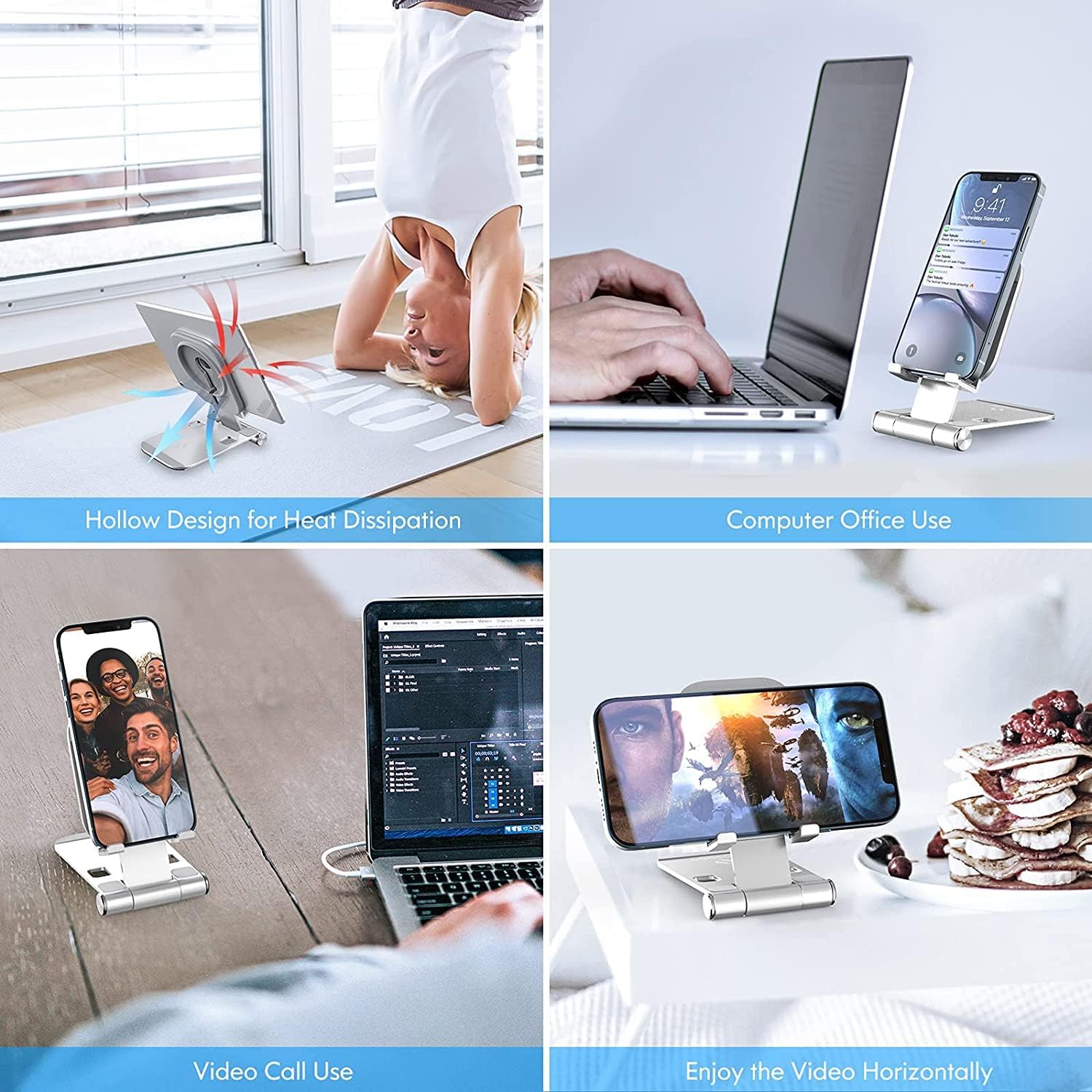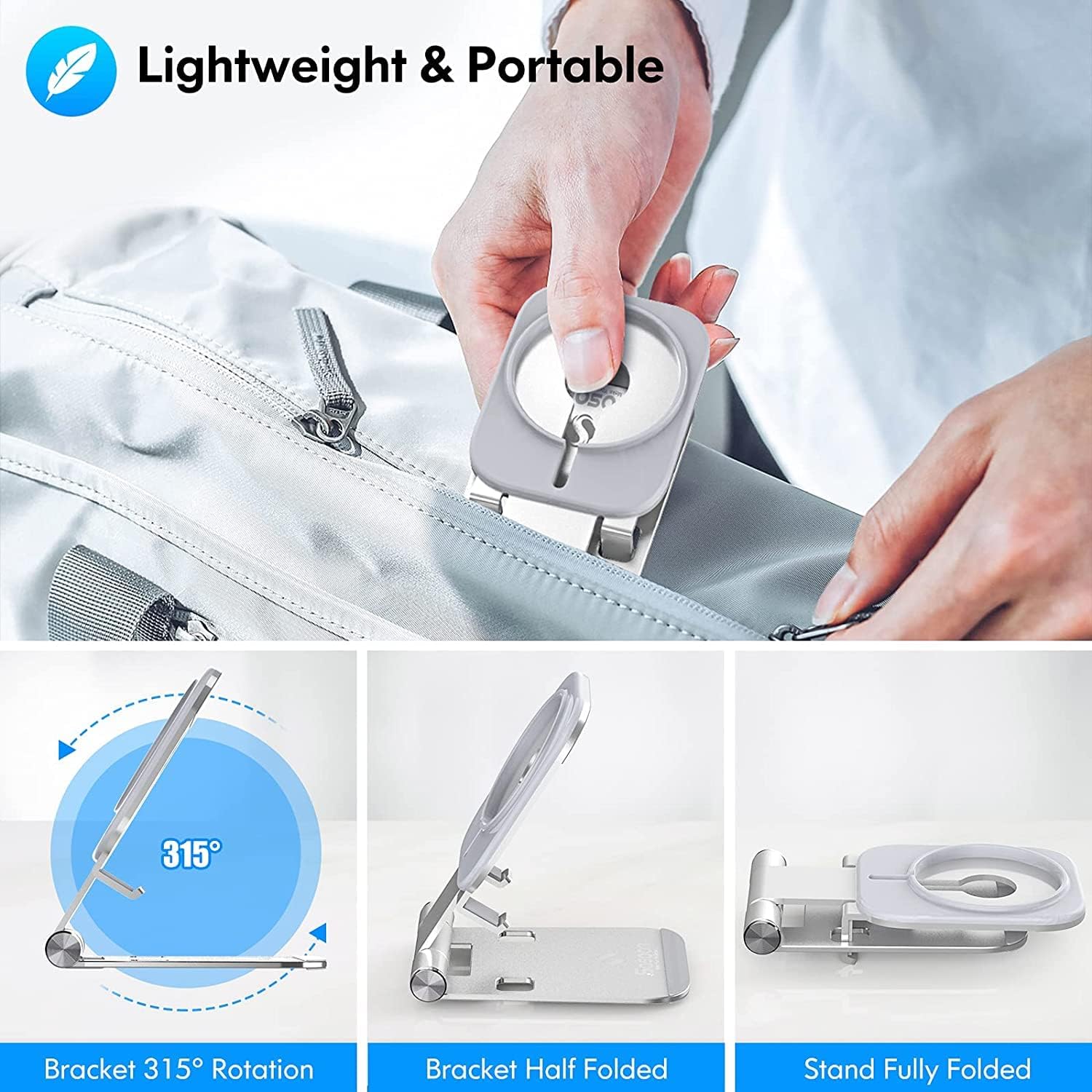 Foldable Stand for Cell Phones and Tablets-Adjustable Desktop Cell Phone Holder Stand Dock Designed and Compatible with iPhone & Magsafe Charger