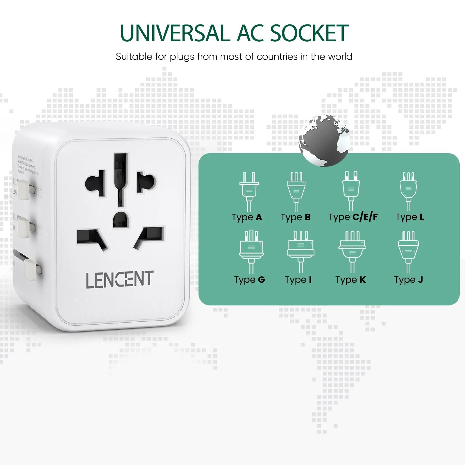 Prepárate para viajar sin preocupaciones con el Adaptador de Corriente de Viaje Internacional Todo en Uno de LENCENT. ¡Hazlo parte de tu equipo de viaje hoy mismo!