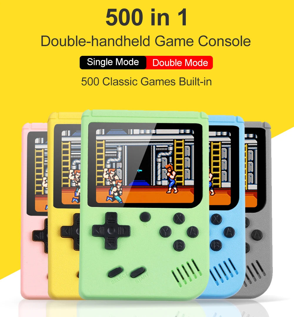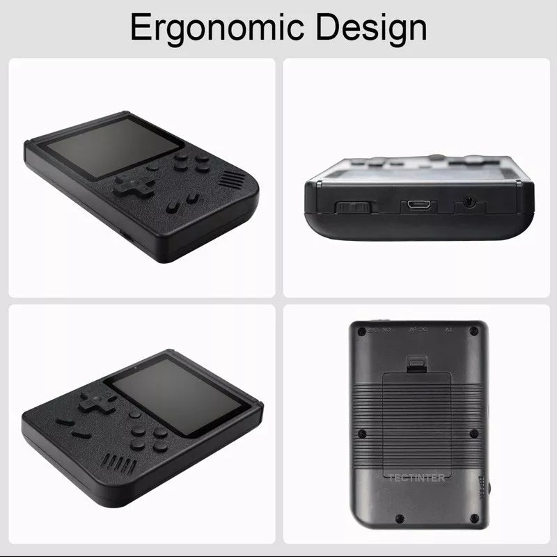 Características destacadas: 🎮 500 Juegos Integrados 📺 Pantalla LCD 3,0" 🌐 Portátil y fácil de transportar 🔒 Certificado CE 🔋 Batería duradera (1020 mAh) 🌈 Variedad de colores 📺 Conexión a TV mediante cable AV.