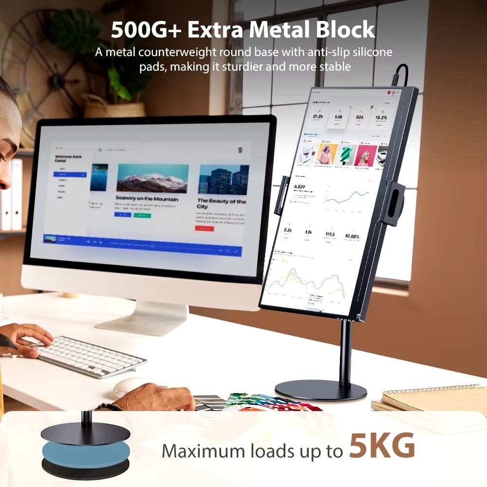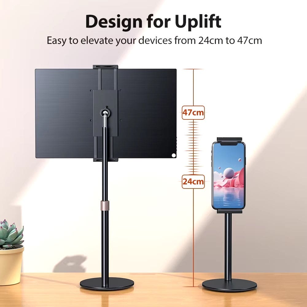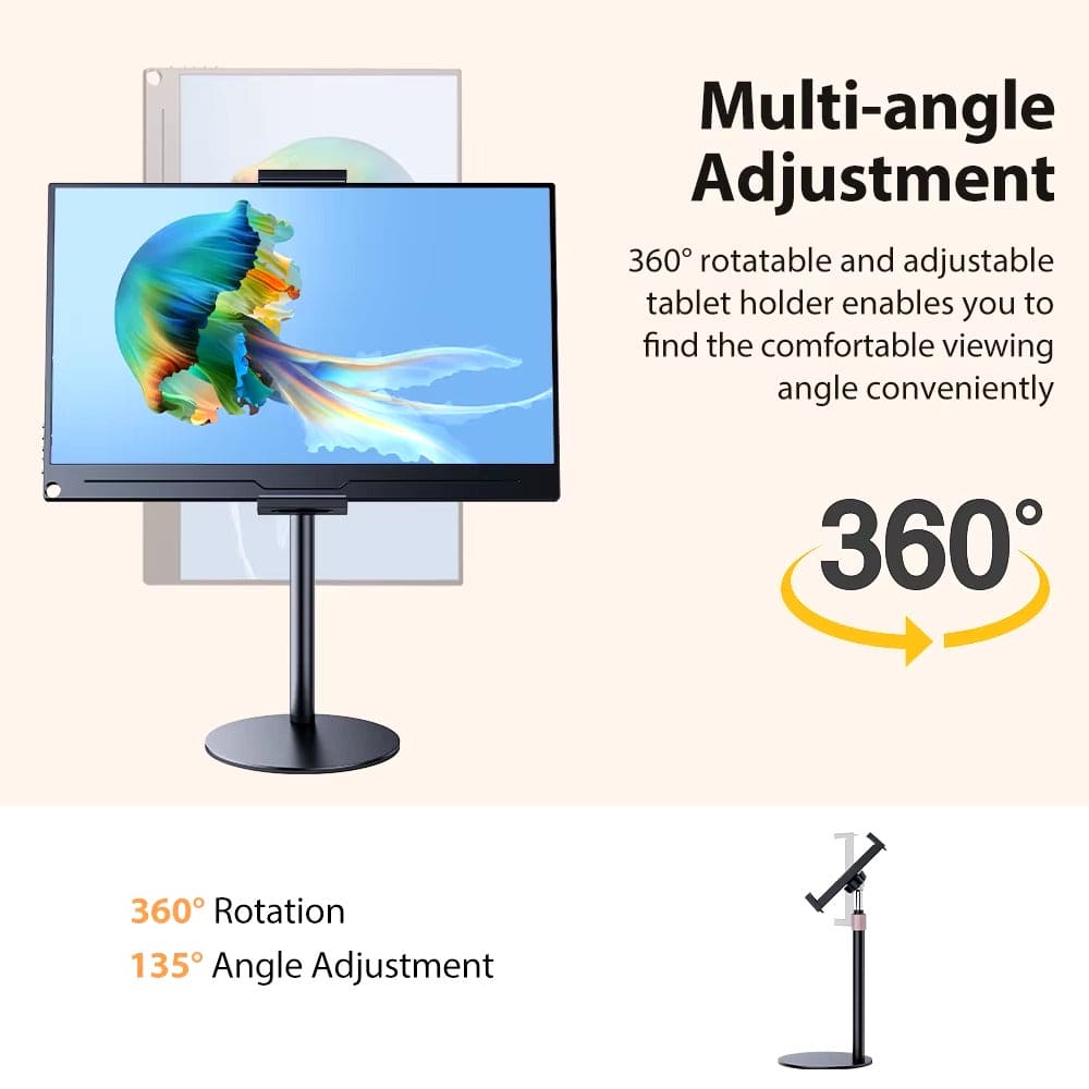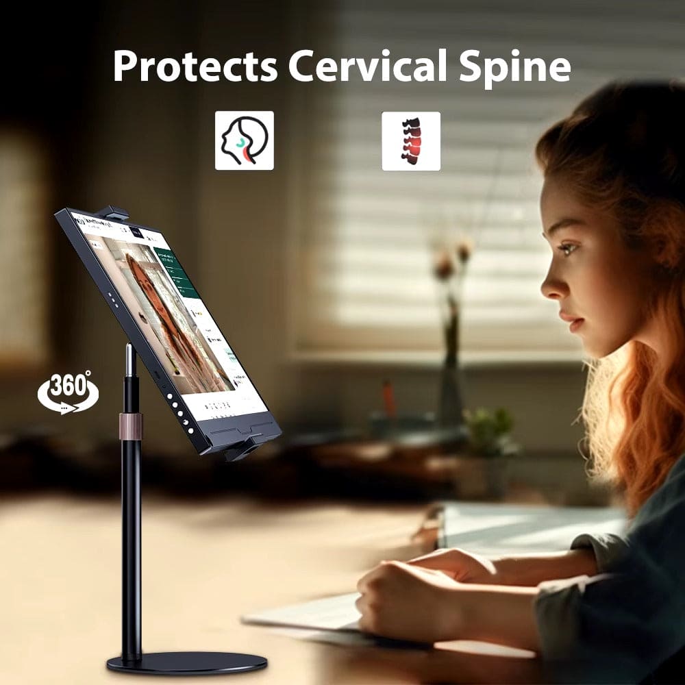 Optimiza tu espacio y eleva tu productividad con este soporte ajustable ideal para monitores, tablets y teléfonos. Su diseño robusto soporta hasta 5 kg y se adapta a dispositivos de hasta 17.3 pulgadas, ofreciéndote una solución versátil para mejorar tu postura y reducir la fatiga visual. Con una base amplia y estable, este soporte permite ajustar la altura entre 24 y 42 cm para adaptar la pantalla a la altura de tus ojos, ayudando a evitar dolores de cuello y espalda. Disfruta de un rango de rotación de 360° y un ángulo de inclinación de 135° hacia arriba y abajo, brindándote la libertad de personalizar el ángulo ideal para cada tarea: desde trabajar y leer hasta ver videos o realizar videollamadas.